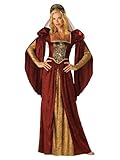 All the knights at your next Halloween party will want to keep you company in the Adult Renaissance Maiden Costume. This costume includes a long, multilayer red and gold crushed velvet gown with an elaborate gold bodice, draping sleeves, and a headpiece with a sheer veil. You'll be the most graceful Renaissance beauty in this elegant costume.